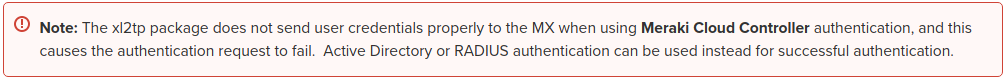 If you want to VPN into your network using the Meraki Cloud Controller the Client VPN Instructions indicate that you may be out of luck when trying to use xl2tp.